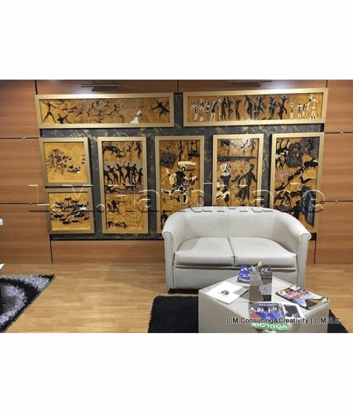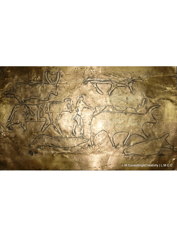 [Peinture, gravure, feuille d'or/argent, marquage au plomb/sable/granulat naturel ou artificiel, collage mini pièces, ciment, ...etc.]